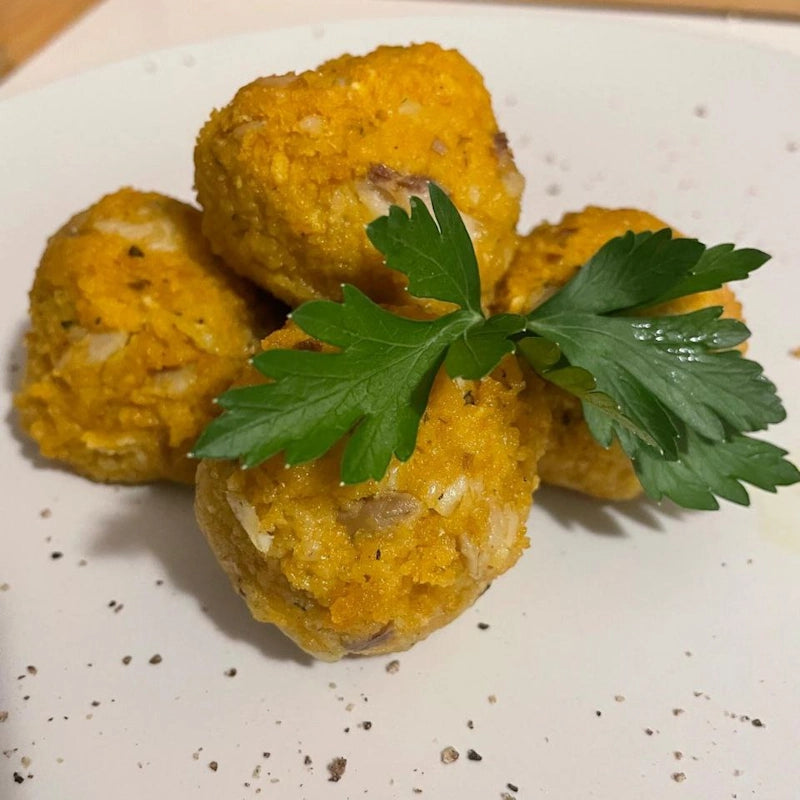 Ingredients are already cooked: just add water, shape, and serve. Patties can be enjoyed cold without cooking, pan-fried, or combined with tomato sauce. Organic product, gluten-free, and free of additives.