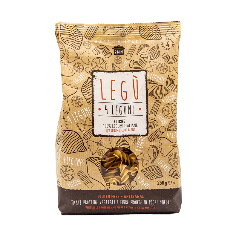 Fusilli 4 legumbres (100% legumbres) son una pasta artesanal sin gluten, elaborada solo con harinas de legumbres cocidas al vapor y trabajadas de forma natural, sin aditivos ni alérgenos. La extrusión en bronce y el secado a baja temperatura garantizan sabor, digestibilidad y excelente firmeza en la cocción. Ideal para quienes buscan proteínas vegetales, fibra y alto rendimiento: 50 g crudos se convierten en unos 120 g cocidos.