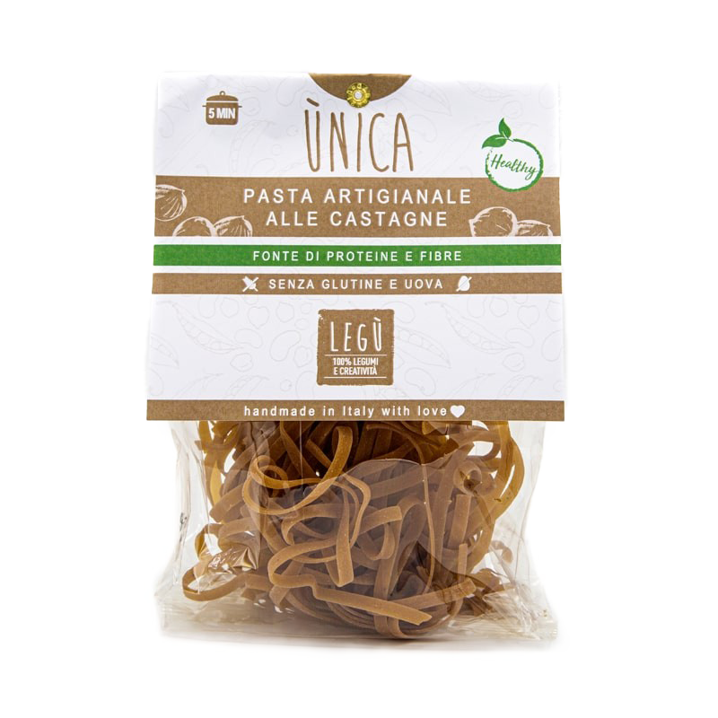 Specialità esclusiva, ideale per chi apprezza il sapore delle castagne in formato tagliatella. Si sposa con sughi delicati o ricette originali; pronta in pochi minuti, offre alta resa e digeribilità.
